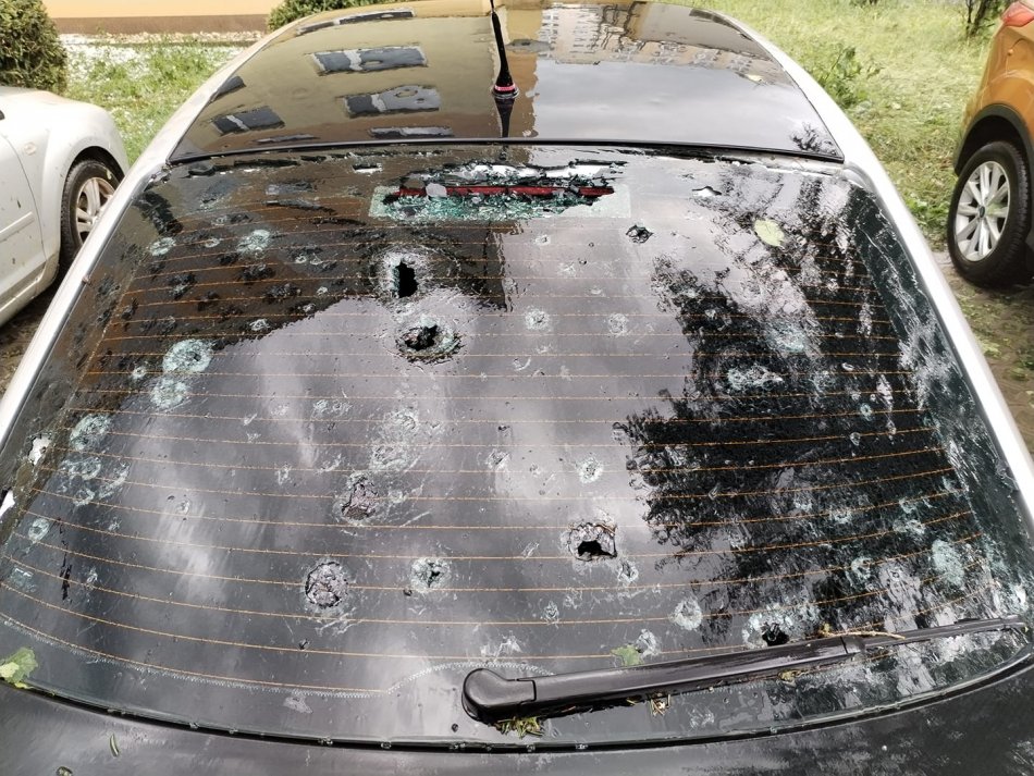 Galéria k článku Horehronci zachytili SPÚŠŤ po búrke: Autá, domy aj útulok NIČILI obrie krúpy, VIDEO a FOTO