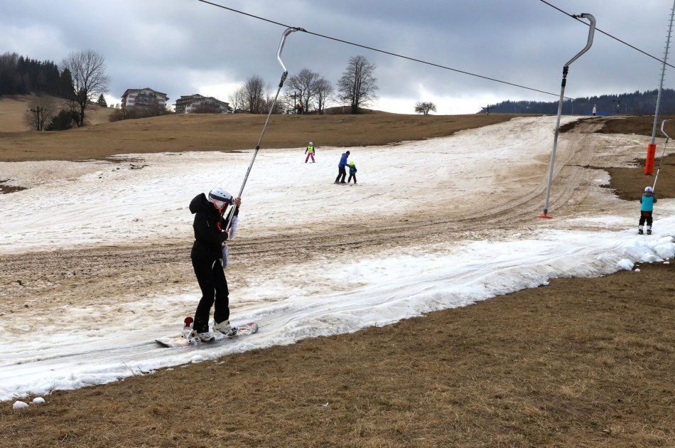 Galéria k článku Špinavý SNEH a okolo zjazdovky BLATO: Jarná lyžovačka veru IDYLICKY nevyzerá, FOTO