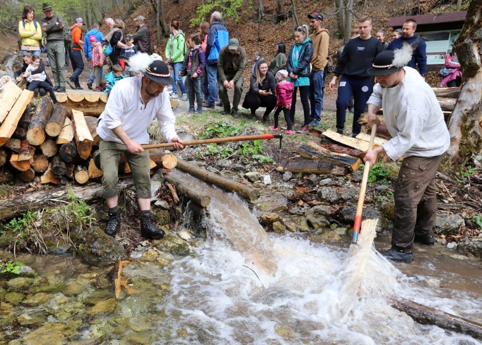 Galéria k článku Unikátny vodný žľab pri Bystrici opäť ožil: Podávali sa aj drevorubačské raňajky, VIDEO a FOTO