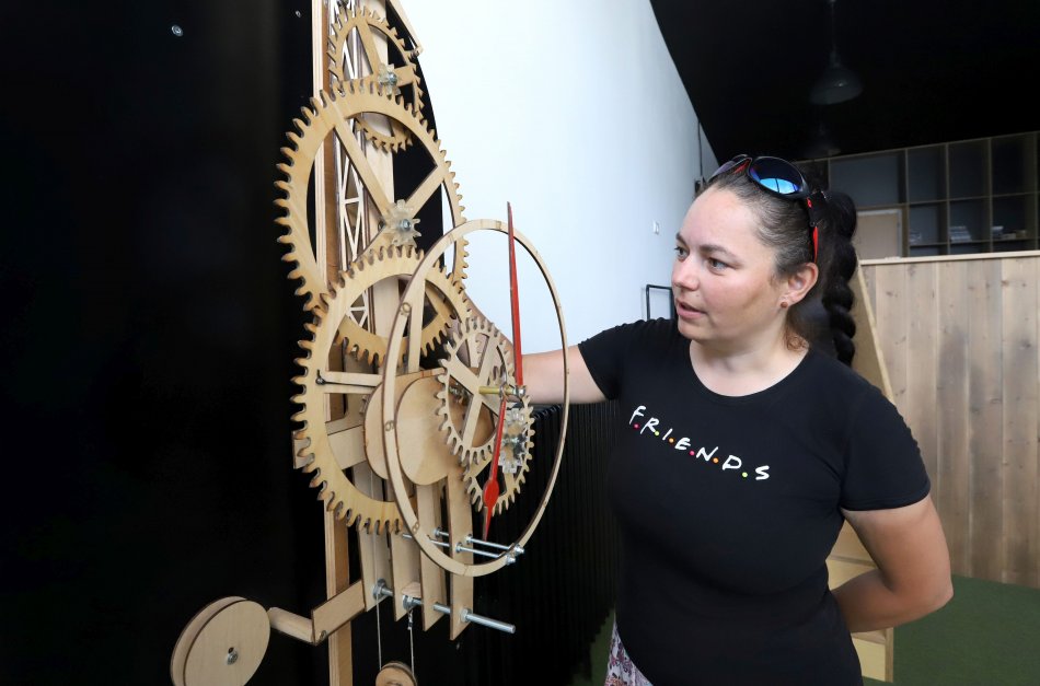 Drevené hodiny a Mária Vargovská z Fakulty techniky, Technickej univerzity vo Zvolene