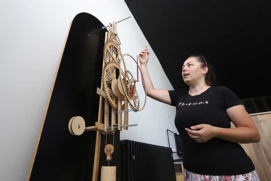 Drevené hodiny a Mária Vargovská z Fakulty techniky, Technickej univerzity vo Zvolene