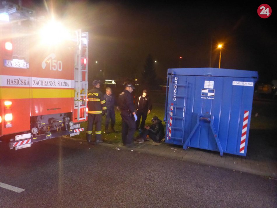 Galéria k článku Kuriózna záchranná akcia vo Zvolene: Muž uviazol v kontajneri, FOTO