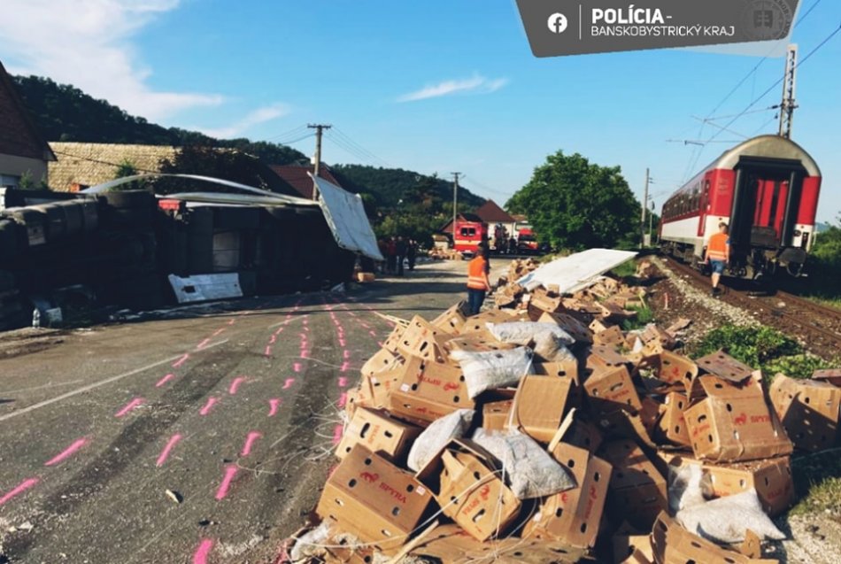 Galéria k článku VÁŽNA nehoda na trati: Po ZRÁŽKE vlaku s kamiónom je zranený šofér aj rušňovodič! FOTO