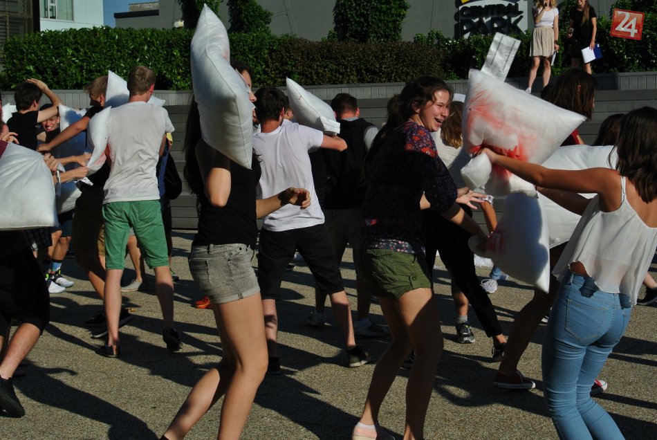 Galéria k článku V nákupnom srdci Bratislavy sa spustila šialená bitka. Vzduchom lietali vankúše