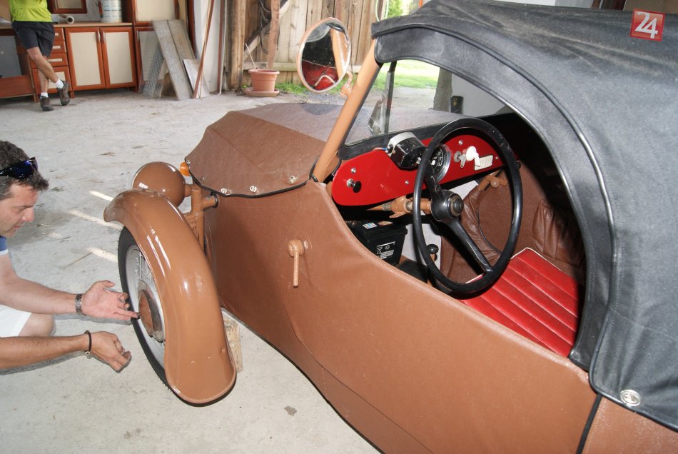 Galéria k článku Miloš si splnil svoj detský sen: V garáži má kuriózne autíčko z Vrchní, prchni!