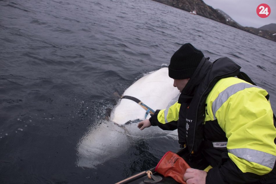 Galéria k článku Nórski rybári narazili na veľrybu, ktorá pravdepodobne prešla ruským vojenským výcvikom