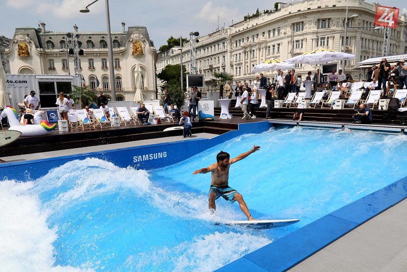 Galéria k článku KURIOZITA DŇA: Zasurfujte si uprostred Viedne. Námestím sa valia morské vlny