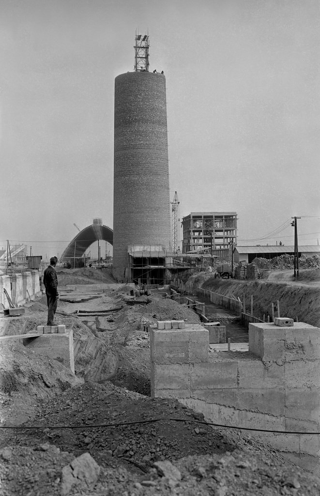 3. november 1962. Na stavenisku pokračujú práce na výstavbe vysokopecného závodu a budovanie 100 metrov vysokého vysokopecný komína.