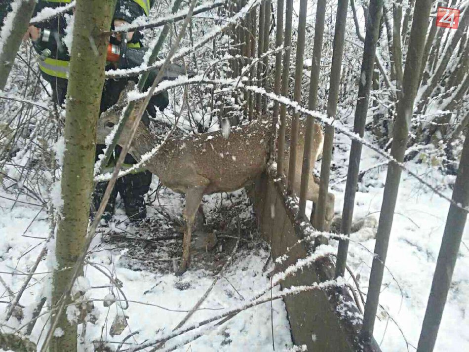 Galéria Za jeden deň zachraňovali hasiči tri srnky uviaznuté v oplotení
