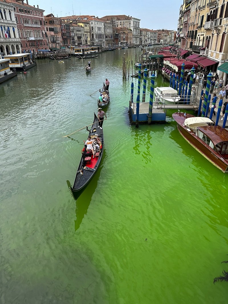 Galéria k článku VIDEO: Voda v Benátkach sa zafarbila na žiarivú ZELENÚ! Ide o úmyselný čin aktivistov?