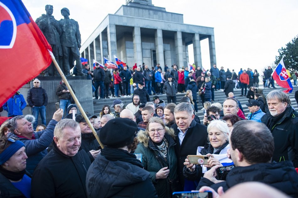 Galéria k článku Na Slavíne sa zhromaždili stovky ľudí "za mier": Fico opäť kritizoval prezidentku, FOTO