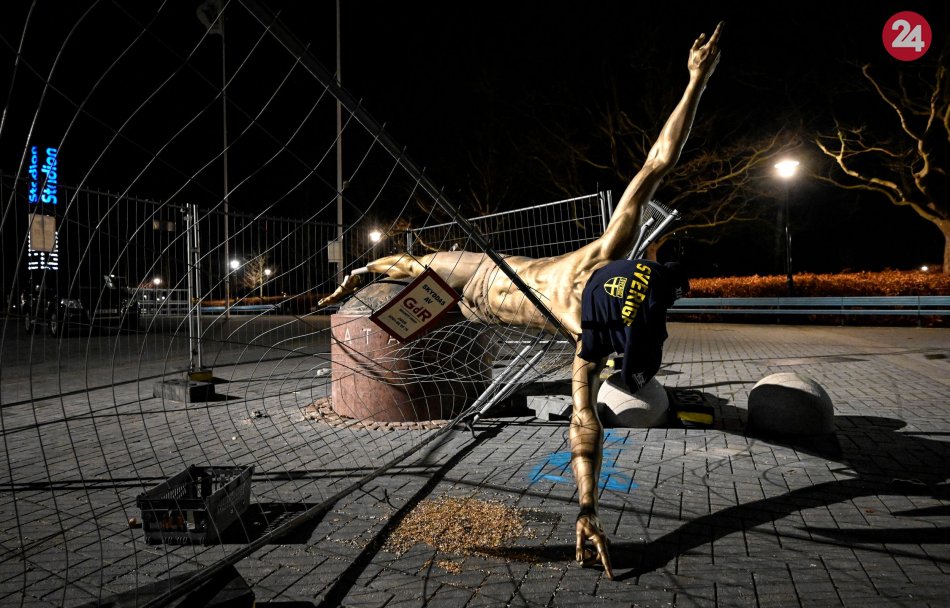 Galéria k článku Švédsky hrdina má doma problémy: Socha Ibrahimovičova je stále terčom VANDALOV! FOTO