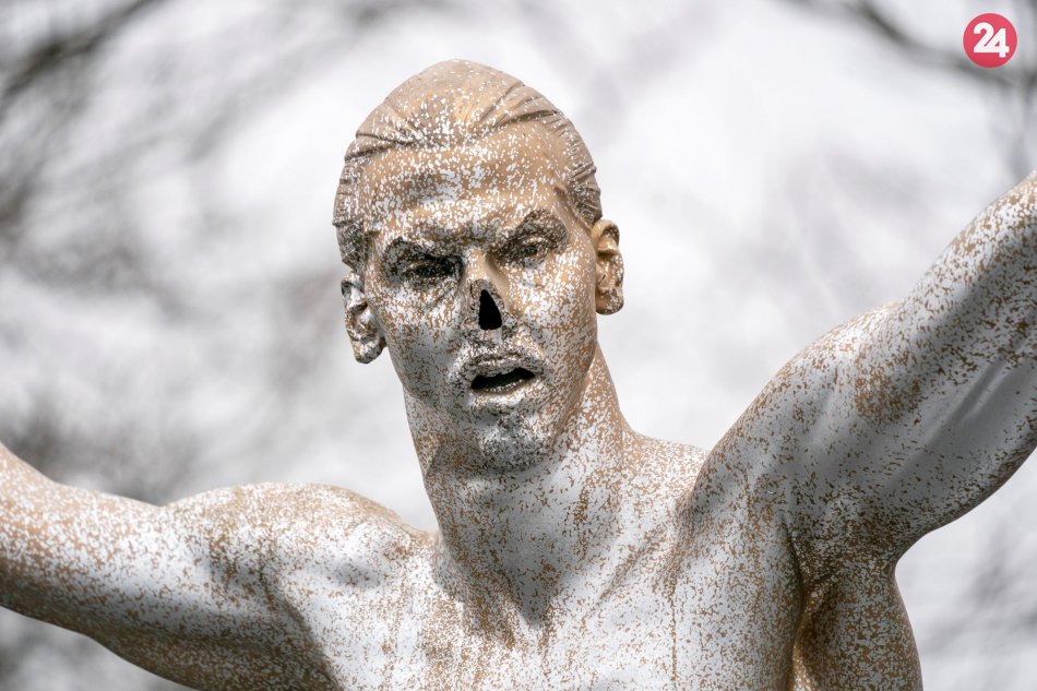 Galéria k článku Švédsky hrdina má doma problémy: Socha Ibrahimovičova je stále terčom VANDALOV! FOTO