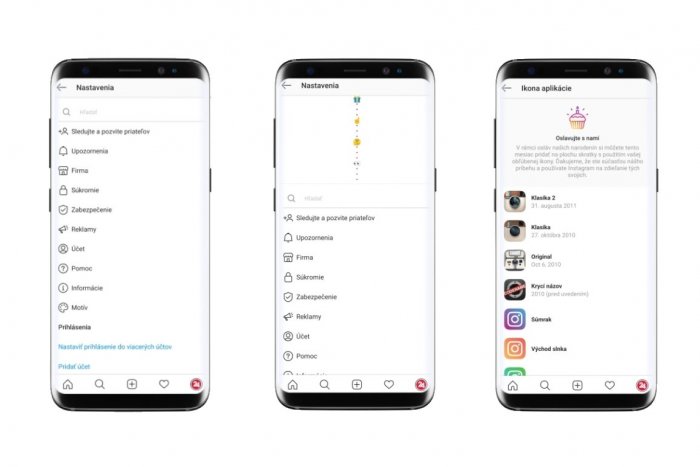 V menu nastavení stačí potiahnuť prstom z hornej strany displeja smerom dole. Následne uvidíte ponuku rôznych ikon aplikácie, ktoré si môžete nastaviť. Na výber je dokonca aj úplne prvá ikona, ktorú dostal Instagram pri svojom spustení 6. októbra 2010. Nastaviť si môžete aj ikonu s názvom „Krycí názov“, ktorú mala pracovná verzia Instagramu ešte pred jeho uvedením na trh.