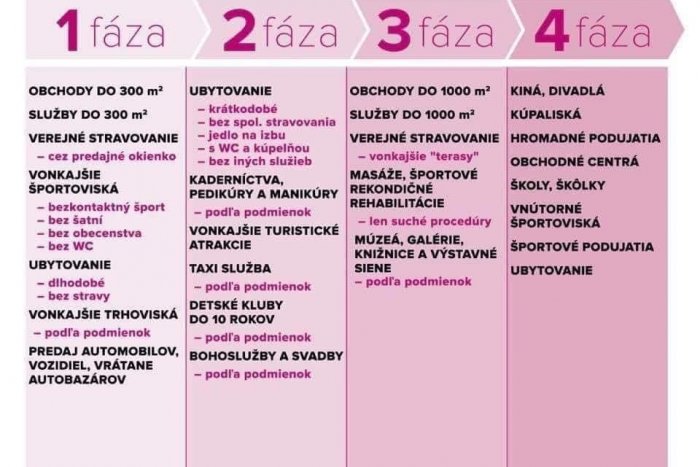 Ďalšie fázy otvárania prevádzok nemajú pevný termín, v ideálnom prípade by mali nasledovať v intervaloch dvoch týždňov.