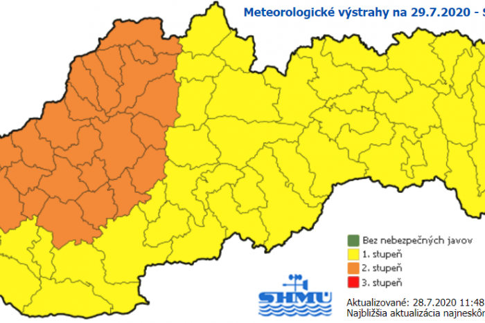 SHMÚ zároveň vydal na štvrtok (30. 7.) výstrahu prvého stupňa pred vysokými teplotami v Bratislavskom, Trnavskom a Nitrianskom kraji. Teplota tu môže dosiahnuť 33 stupňov Celzia.