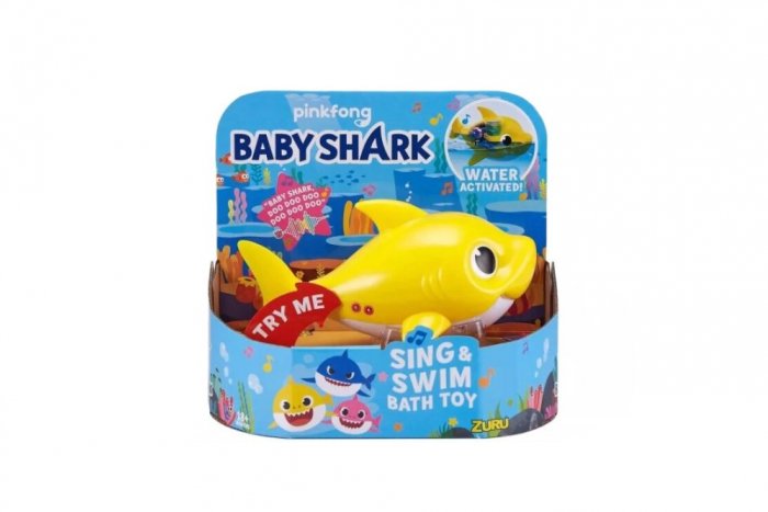 Plastová hračka na batérie vyzerá ako malý žralok a dodáva sa v troch farbách – žltej, modrej a ružovej. Po vložení do vody pláva a spieva.