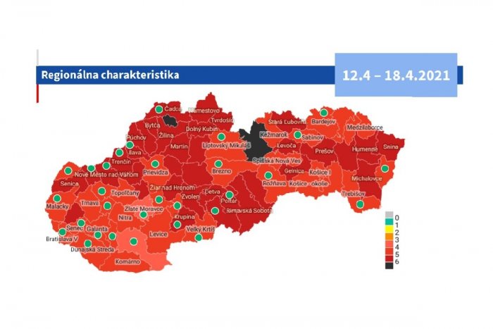 Od pondelka 12. apríla budú podľa COVID automatu na Slovensku už len dva okresy čiernej farby, teda vo štvrtom stupni varovania. V bordovej farbe ich bude 36, v červenej 39 okresov. Do prvého stupňa varovania (ružová farba) sa dostali dva okresy.