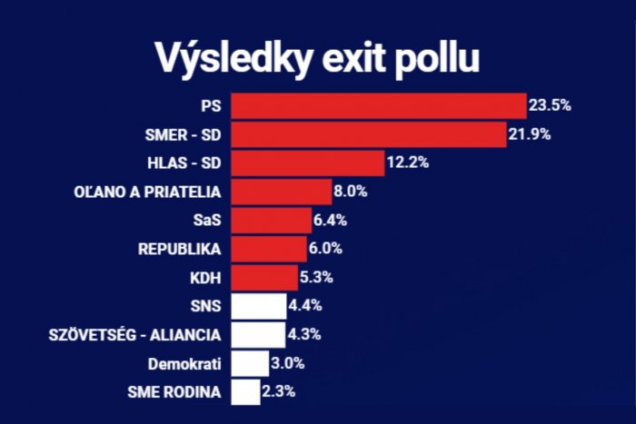 O víťazovi volieb rozhodlo len pár hlasov. Vyplýva to z exkluzívneho exit pollu od agentúry FOCUS pre TV Markíza. Ten pozostáva z 20-tisíc oslovených voličov.