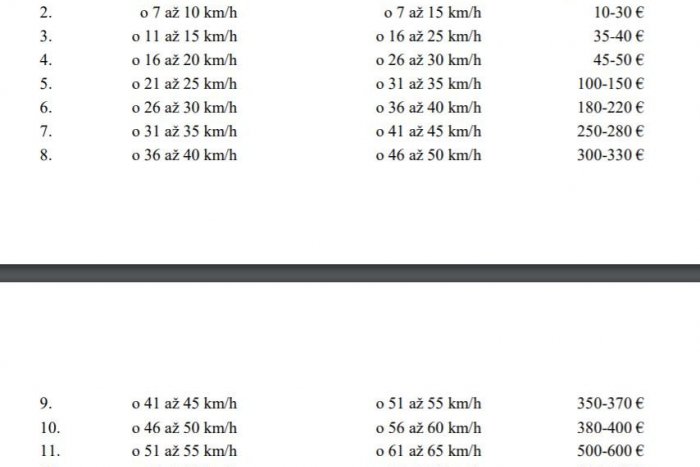 - Bránenie v predchádzaní, najmä zvyšovaním rýchlosti jazdy alebo iným spôsobom: 50 €