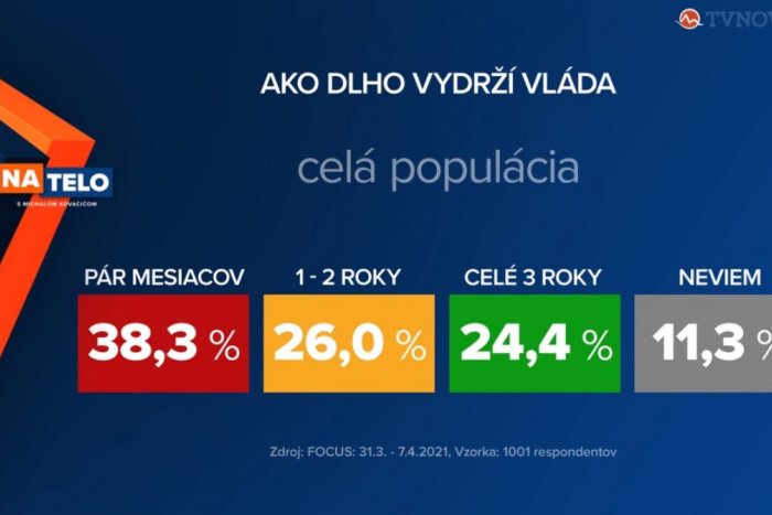 „Podľa 38,3 percenta voličov súčasná vláda vydrží vládnuť iba pár mesiacov. Ďalších 26 percent opýtaných si myslí, že vláda vydrží maximálne jeden až dva roky. Ďalších 24,4 percenta ľudí si myslí, že nová vládna koalícia vydrží pri moci celé tri roky. Celkovo 11,3 percenta opýtaných sa nevedelo k otázke vyjadriť,“ zverejnila televízia výsledky prieskumu.