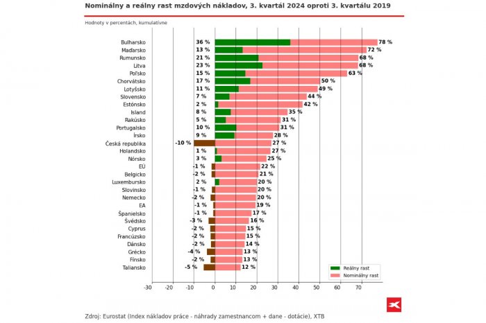 Na opačnej strane rebríčka je Bulharsko, kde zaznamenali najvýraznejší rast reálnych aj nominálnych miezd. Táto krajina adaptuje podobný model, aký kedysi využilo Slovensko – nízka cena práce láka zahraničných investorov a podniky, no nedostatok kvalifikovanej pracovnej sily následne tlačí na rast miezd.