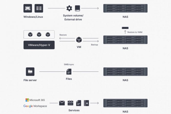 Pre tieto potreby ponúka Synology bezplatné aplikácie Hyper Backup and Snapshot replication.