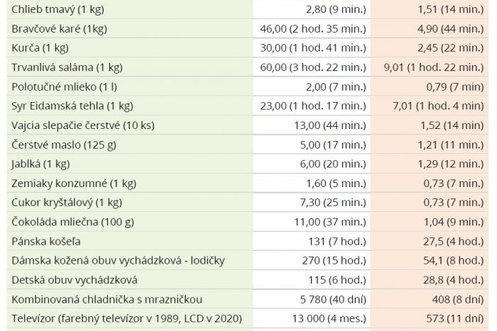Výsledok? „V porovnaní so situáciou pred rokom 1989 väčšina potravín aj spotrebných tovarov zlacnela. Presnejšie, stačí na ne odpracovať menej hodín,“ konštatuje analytička.