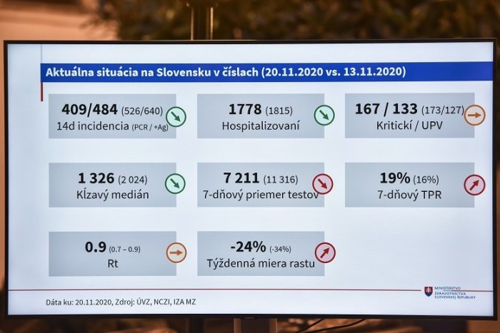 Počet pozitívne testovaných pacientov na nový koronavírus, ktorí potrebujú hospitalizáciu, nerastie. Stav sa udržuje približne na čísle 1 800. Aktuálne klesol z 1 815 na 1 778. Reprodukčné číslo je 0,9. Počet prípadov stále klesá, avšak už menej výrazne. Kým minulý týždeň predstavoval pokles 34 percent, teraz 24. Minister zdravotníctva Marek Krajčí (OĽANO) o tom informoval na piatkovej tlačovej konferencii.